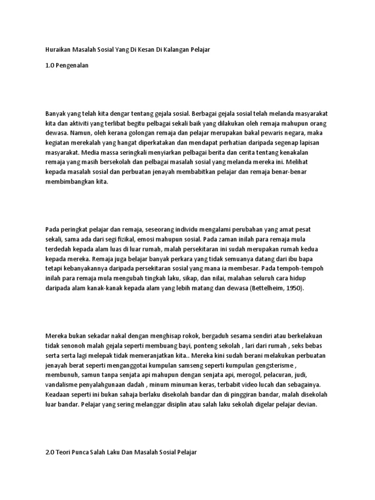 Huraikan Masalah Sosial Yang Di Kesan Di Kalangan Pelajar Pdf